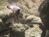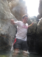 Taking the right fork we scrambled up the side in order to return back through the wadi. After 100m we nipped into wadi and took on a series of pools with the odd bit of swimming.