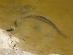 The bumping along the wadi was finally cut short by an impassable cataract in the wadi. It was 11am and thrusting two masafi 1.5 ltr bottles of water into my bag together with the trusty cashews I hit the wadi. Almost immediately the star of the main picture above darted across my path. We had a brillant photo shoot before he went on his little way. The weather had been unseasonally cool for weeks but on that day it was cranked up a few degrees, not too bad but just a few degrees. 5kms later after going through many dried up pools I hit the first wet one. As I approach a startled snake darted into the water and to safety on the far side. Now I had a few electronic gizmos on me and there was a snake in the pool so the only option was to climb out of the wadi walk along then drop back in further up. The climb up was on rather loose but still compacted moraine. Every hold had to be kicked to remove the loose stuff and gingerly I made my way out of the wadi. An equally ginger drop back down and I was on my way again.