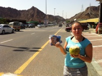 We set off. Once we reached the “Friday” market we knew we were close. A quick stop, a coconut and two inflatable Dora the explorer dolls later and then we kicked onto the wadi.