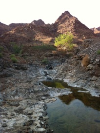 As we drove up the wadi Friday jovial families were BBQing left right and centre. At the head of the wadi we took a quick walk along a pleasant bare rock babbling brook. There was a great potential camping spot after an initially pretty rough entry track.