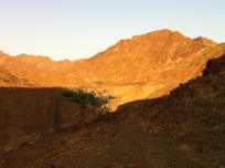 After we narrowly escaped the amorous frogs we tripped to our third location of the day. As we approached the top of the first large col the road was becoming steeper and steeper. Just as we reached the apex it became rutted where other people have struggled and then we struggled. After a fair amount of wheel spin it was time to take our medicine. The track was narrow and steep and so when reversing down the track our car was more under the influence of gravity then the steering wheel! We reached the bottom. I was very keen on having another crack with a bit of extra juice but the misses was less keen. Discussions continued then we both noticed what looked like a parallel track. This finished all discussions and we tried again. This second track was less steep but more uneven. We reached the top to a magnificently glowing vista. The sun was getting low and it made the landscape look warm. After going in and out of the wadi we reached the end of the track. As the sun was going down we quickly dashed up the wadi and stopped at the first pools and had to return.